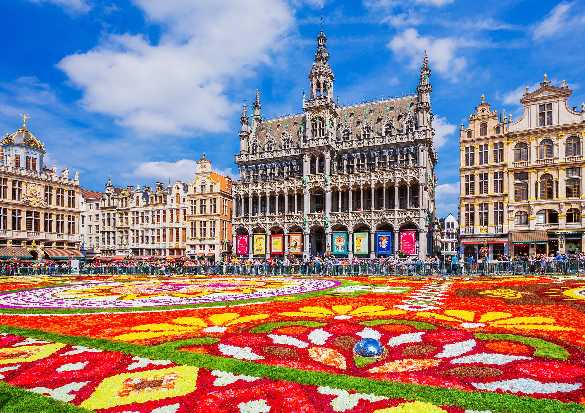 Every two years, Brusselsโ Grand Place transforms into a mind-blowing flower carpet made of over half a million blooms. Hundreds of volunteers assemble this masterpiece in under eight hours, creating stunning patterns, vibrant colors, and unique designs that change every edition.